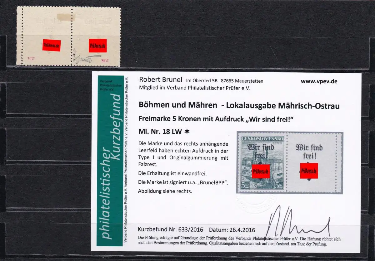 Bohême & Mähren: Moravie - Ostro-Rau, Mi Nr. 18 LW, *
