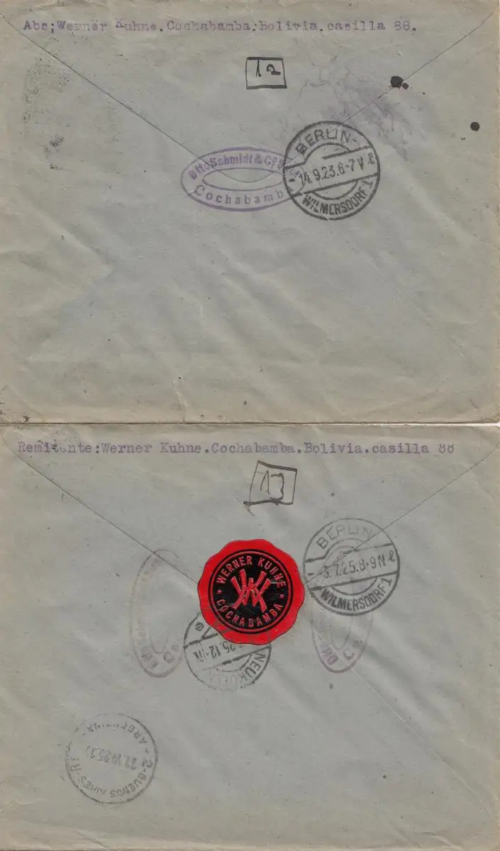Bolivia/Bolivie: 1925: 2x Cochabamba to Berlin