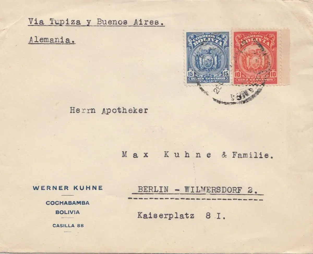 Bolivia/Bolivie: Cochabamba cover to Berlin