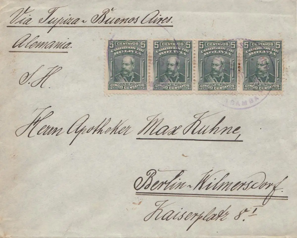 Bolivia/Bolivie: Cochabamba via Buenos Aires to Berlin/Germany 1915