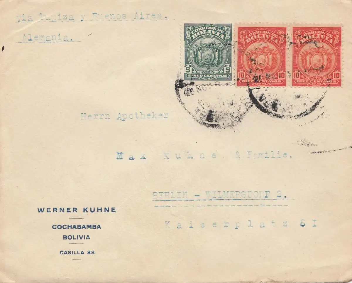 Bolivia/Bolivie: cover Cochabamba via Buenos Aires to Berlin/Germany