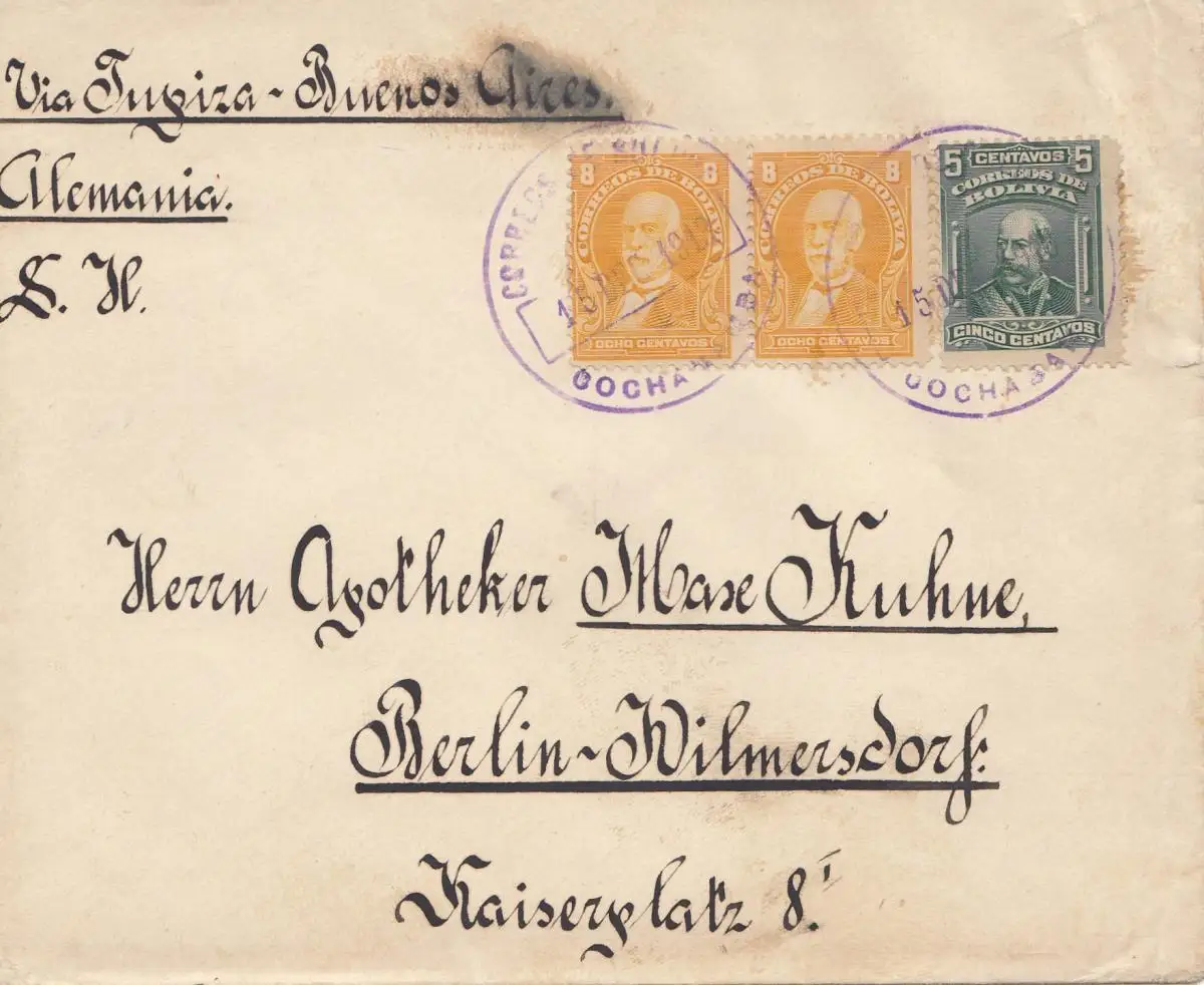 Bolivia/Bolivie: 1913 Cochabamba via Buenos Aires to Berlin Wilmersdorf