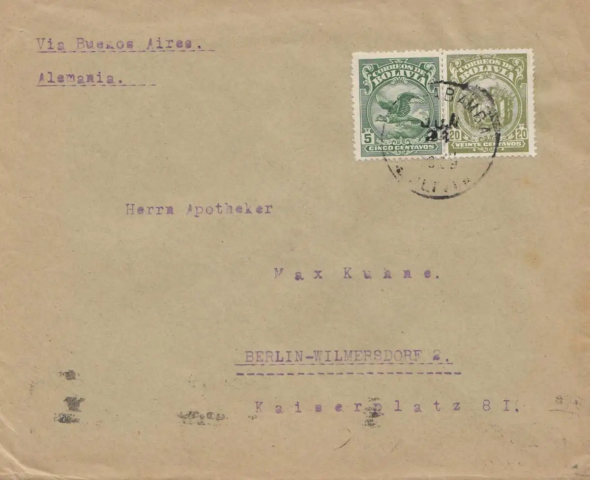 Bolivie: 1929 Cochabamba to Berlin/Germany