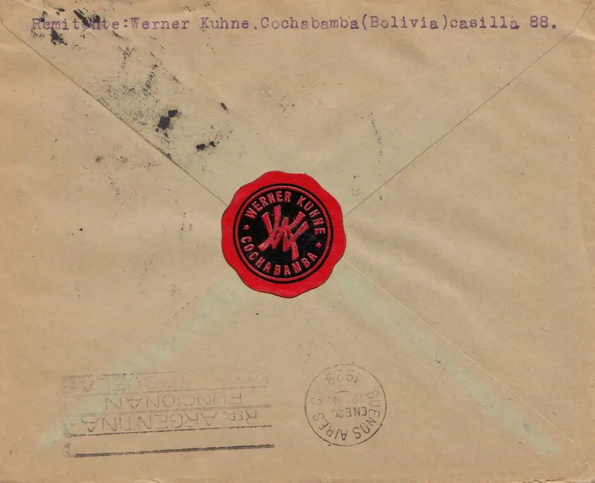 Bolivia/Bolivie: 1929 cover Cochabamba via Buenos Aires to Berlin/Germany