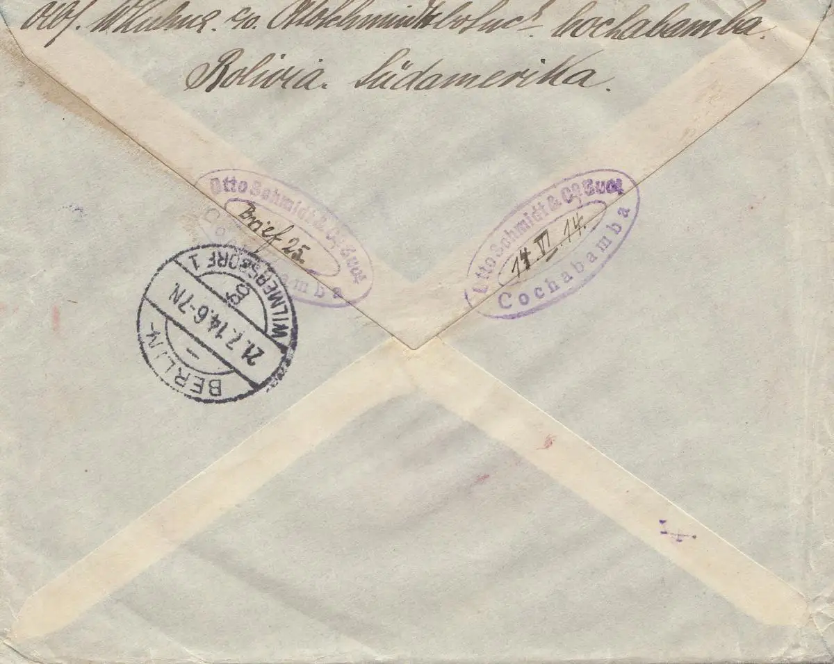 Bolivia/Bolivie: Cochabamba 1914 via Buenos Aires to Berlin/Germany