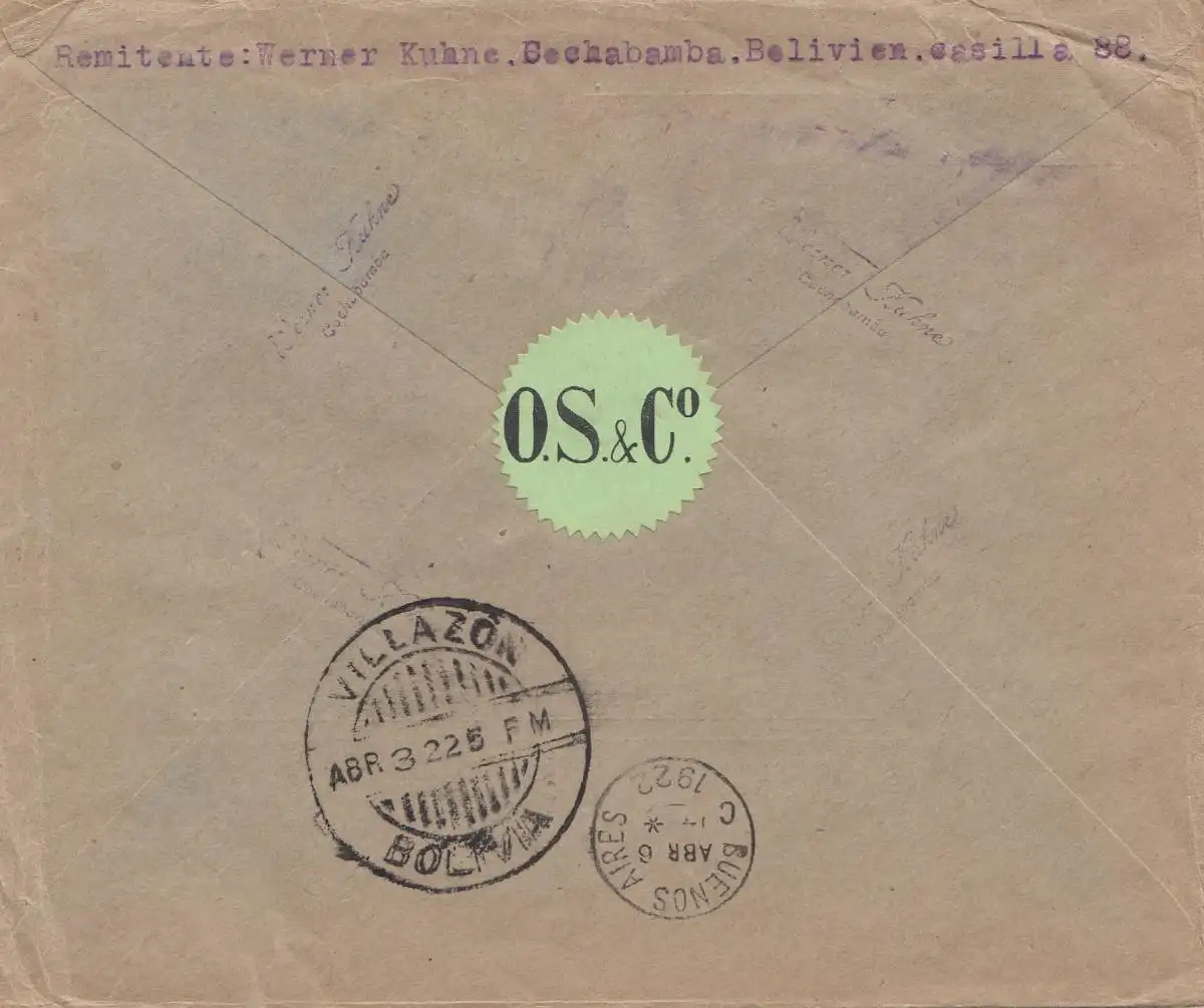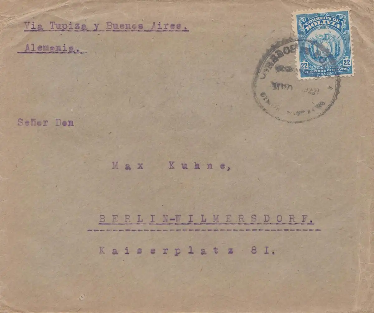Bolivie: Cochabamba via Buenos Aires to Berlin 1922