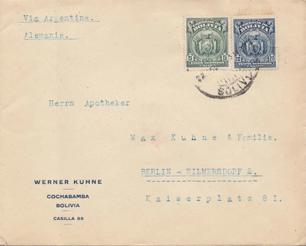 Bolivie: cover Cochabamba via Buenos Aires to Berlin/Germany