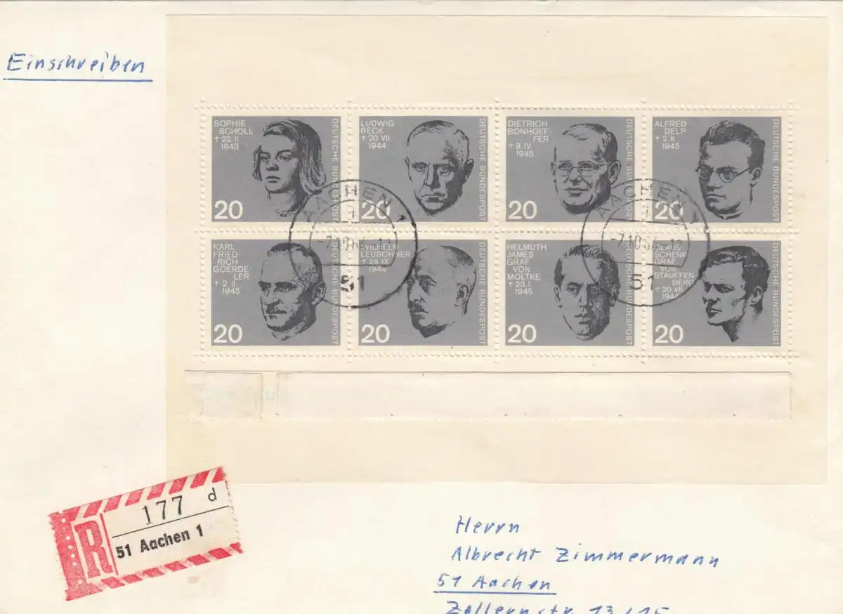 Bonn Lettre recommandé avec le combattant de résistance Block 1964, 7.10.64 Aix-la-Chapelle