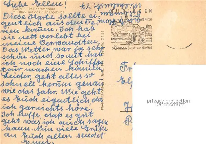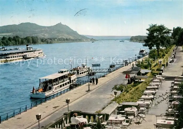 Bonn_Rhein Rheinpromenade mit Siebengebirge Ausflugsschiffe Bonn_Rhein postalisch gelaufen nach 1965 Erhaltung siehe scans [WerneD78] WernPID7