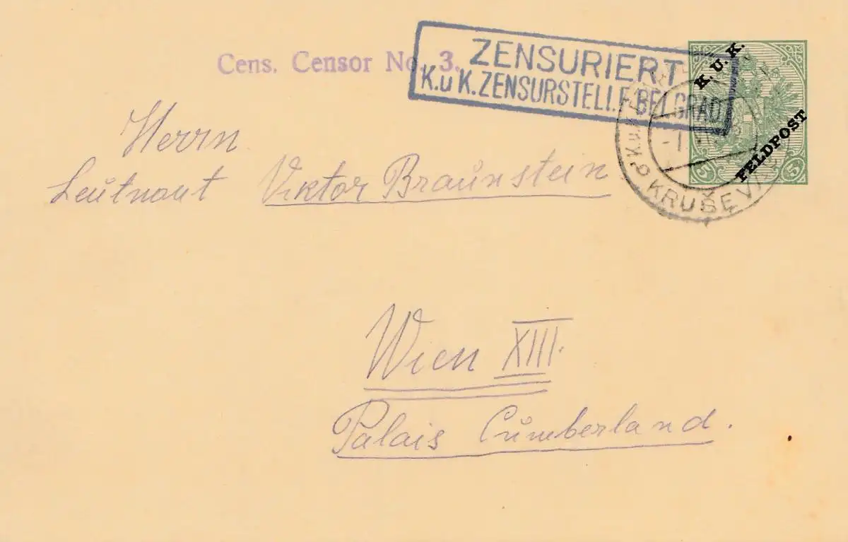 Bosnie: 1916: Toute l'affaire Krusevac à Vienne: Censée: Kuk Feldpost