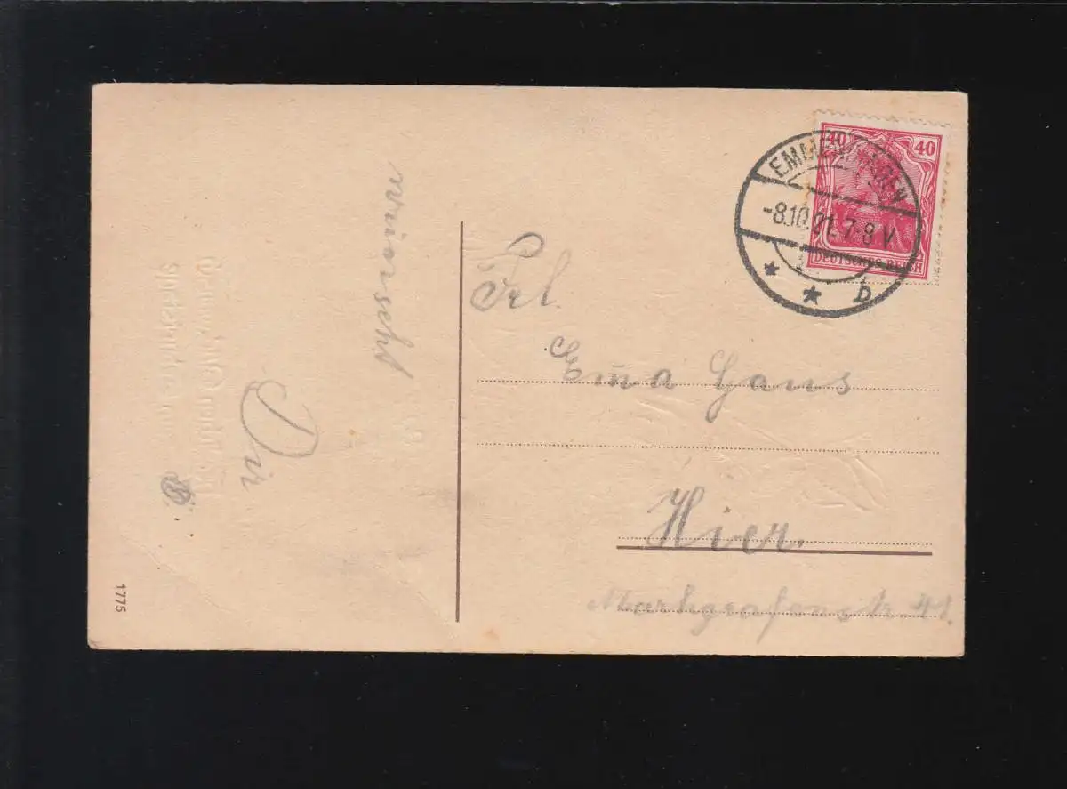 Branches de roses N'oubliez pas, Félicitations, Anniversaire, Emmendingen 8.10.1921