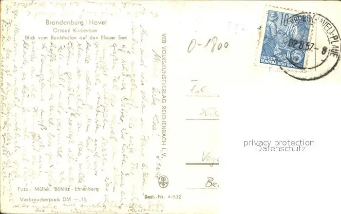 Brandenburg Havel Kirchmoeser Bootshafen Plauer See Brandenburg postalisch gelaufen 1957 Erhaltung siehe scans Alte Ansichtskarte Postkarte NataID47