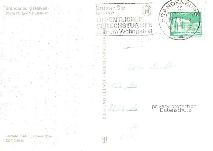 Brandenburg_Havel Weisse Flotte MS Aktivist Brandenburg Havel postalisch gelaufen 1981 Erhaltung siehe scans [FriedD77] Frierer