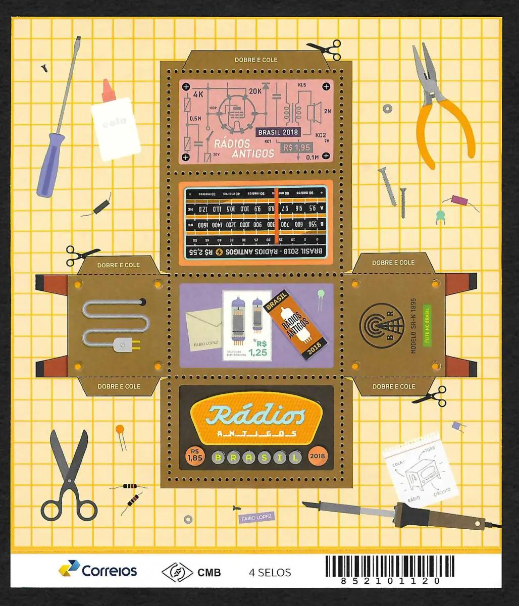 Brasilien 2018: Radio, Lötkolben, Schere, Block 1, Form eines Radioschrankes **