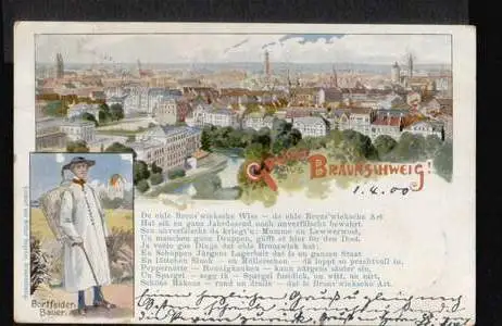 Braunschweig. Gruss aus. Bortfelder Bauer - Gelaufen. 1900. mit Gedicht. (NPLZ 38100) Posiadamy rowniez konto zlotowkowe w Polsce.