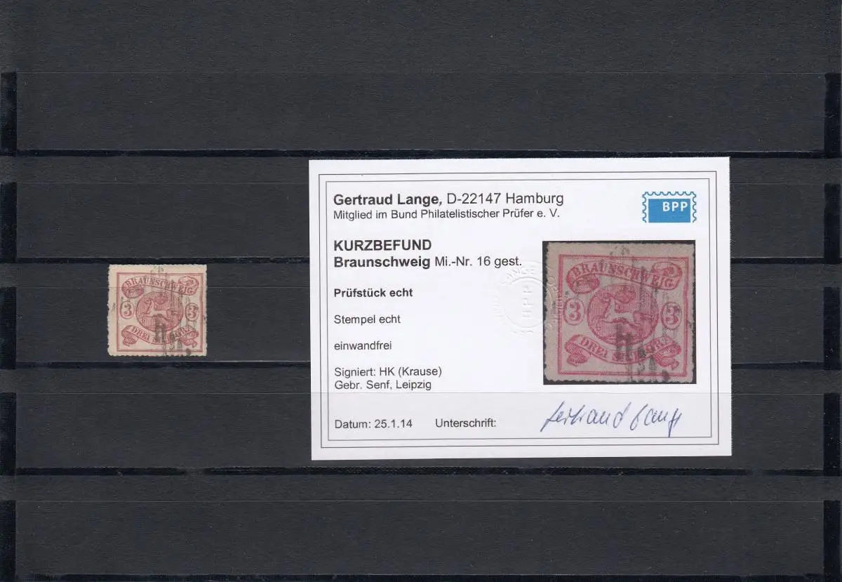 Braunschweig: Min. 16, cacheté, résultat BPP