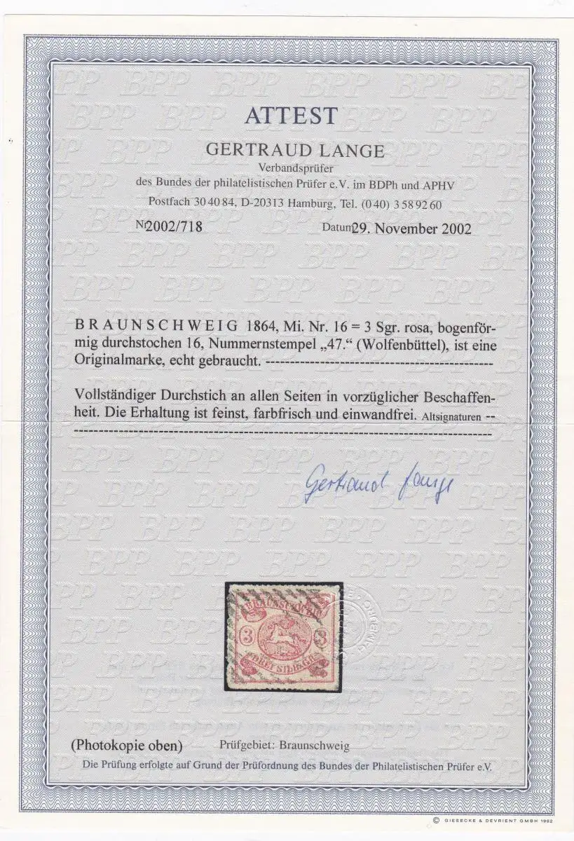 Braunswick: Mirch. 16, cacheté, cachet 47, BPP Battest