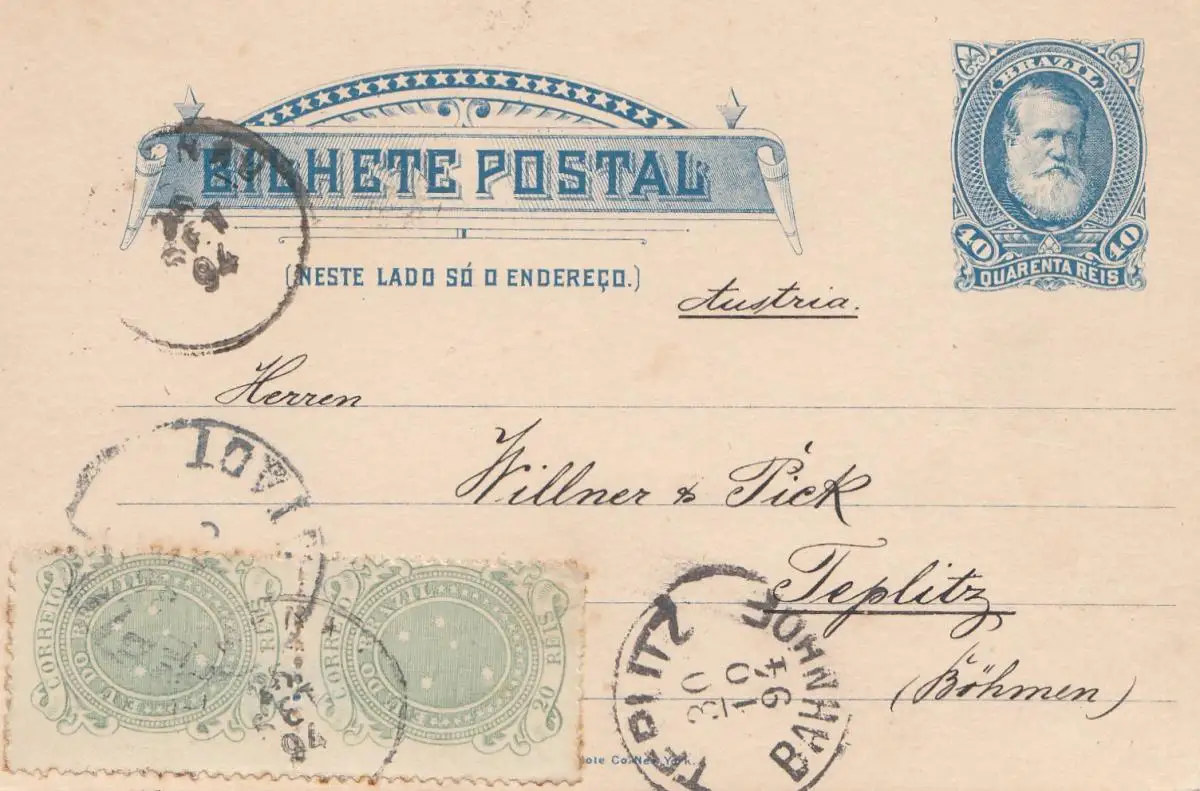 Brazil: 1894: Bilhete Postal-card to Teplitz/Germany