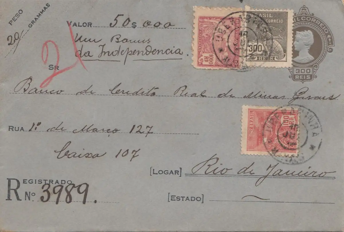 Brazil: 1921: Value letter to Rio de Janeiro