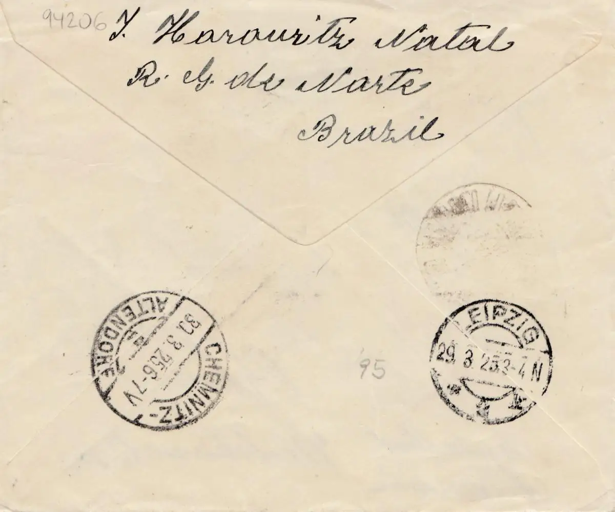 Brazil: 1925: Registered cover to Chemnitz