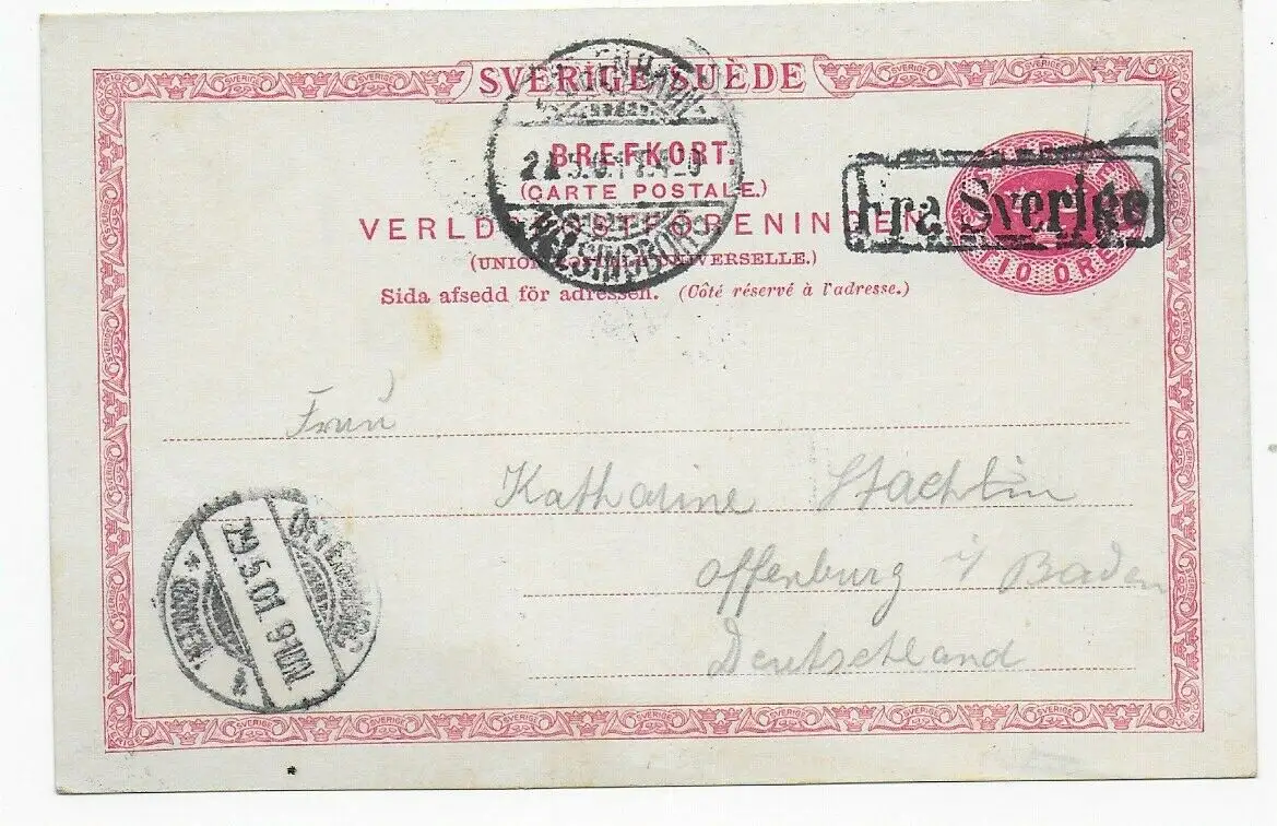 Brefkort Pra Sverige Helsingsborg, 1901 vers Offenburg