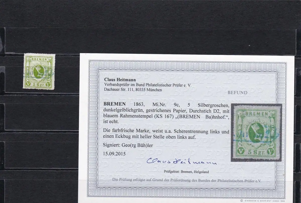 Brême: Min° 9c, cacheté gare de Brenner, BPP résultat