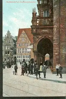 Bremen. Marktplatz mit Rathauscolonaden - Gelaufen 1911. (NPLZ 28000)