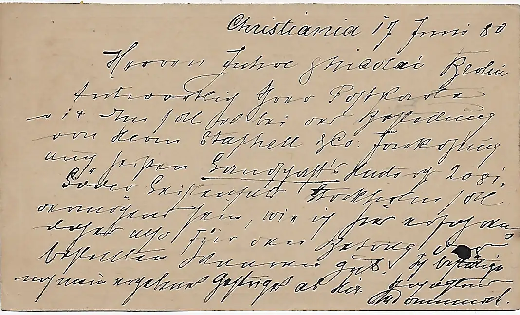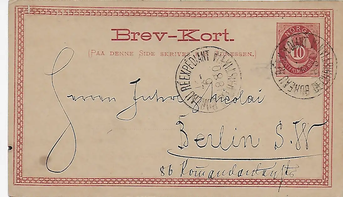 Brev-Kort Chistiania vers Berlin en 1880