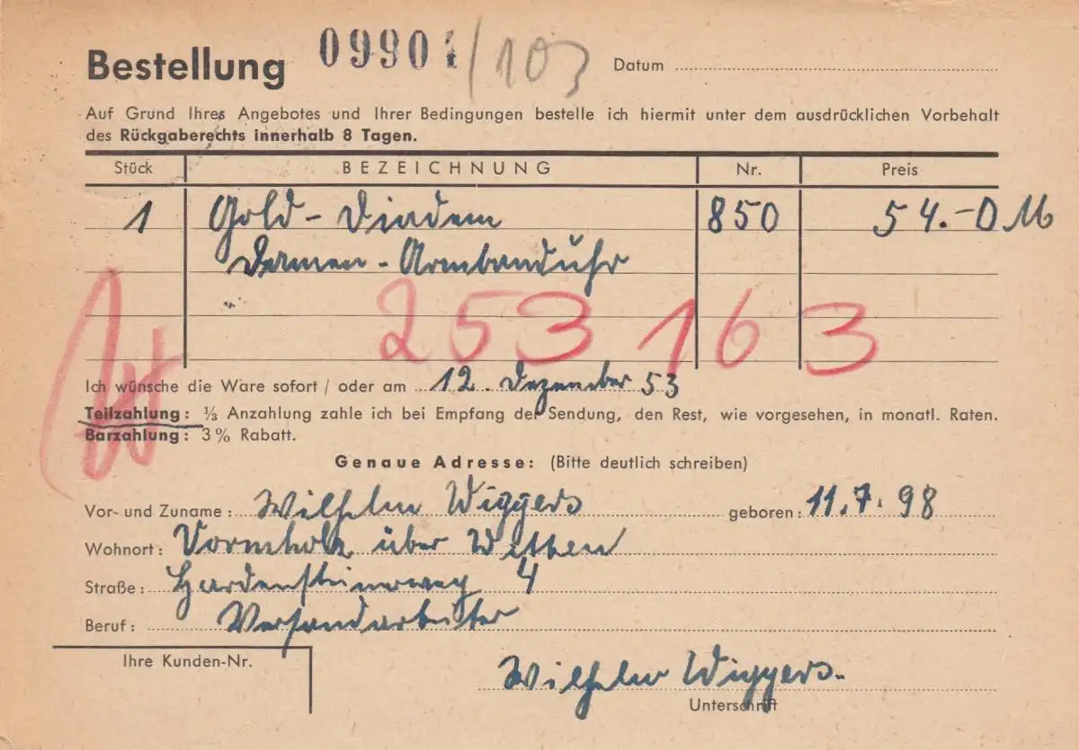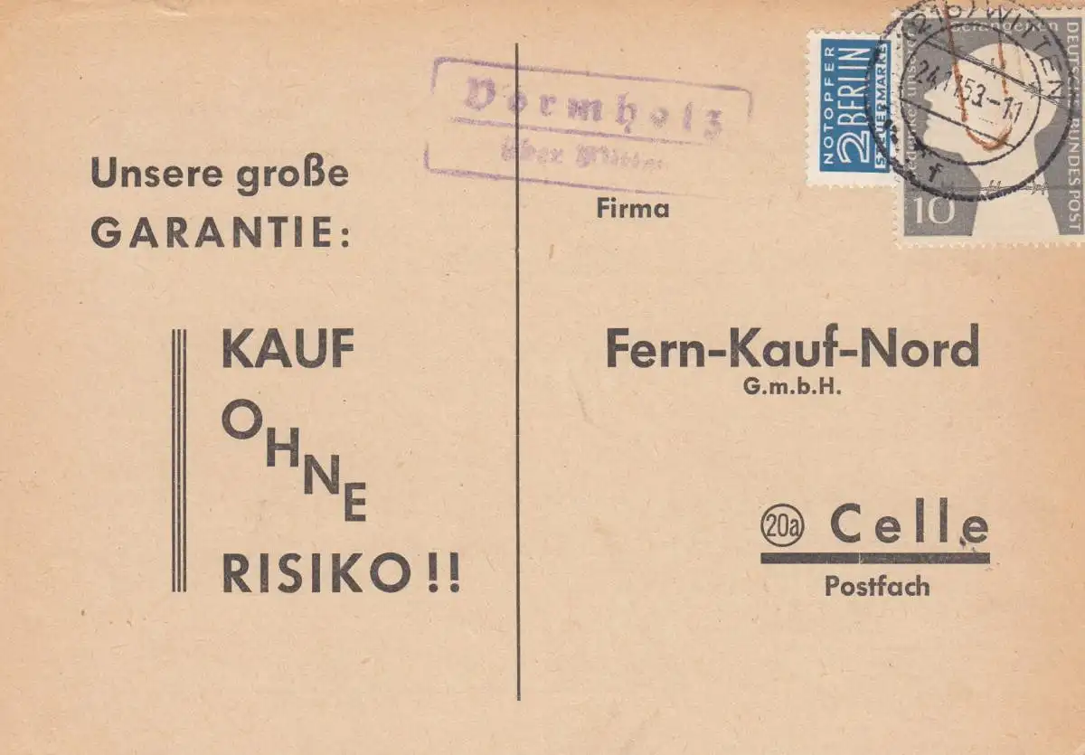 Lettre de Dormholz en 1953 sur Witten à Celle