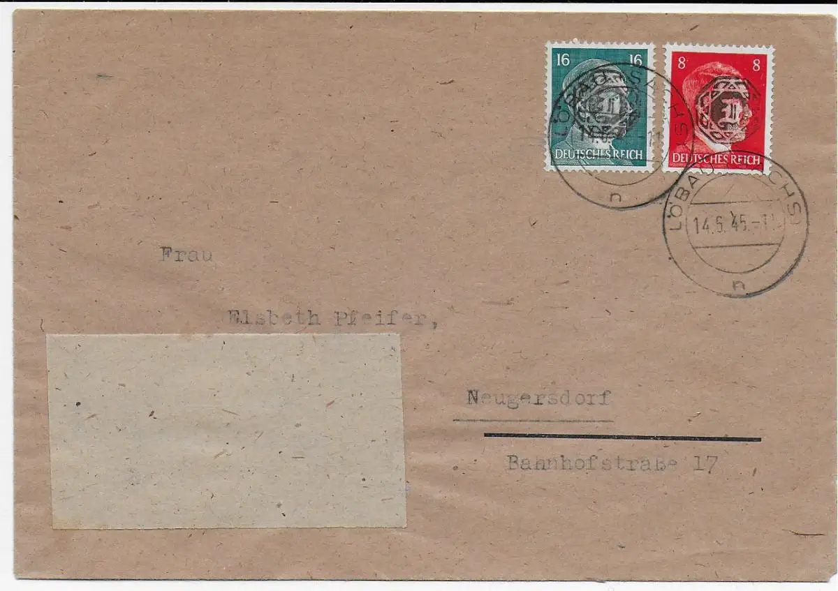 Lettre de Löbau/Sachsen, 14.6.45 vers Neugersdorf