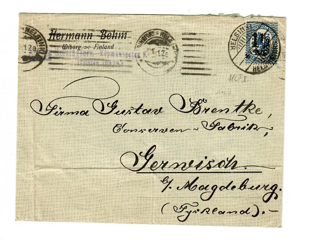 Lettre de Wiborg, Helsinki à Magdeburg,