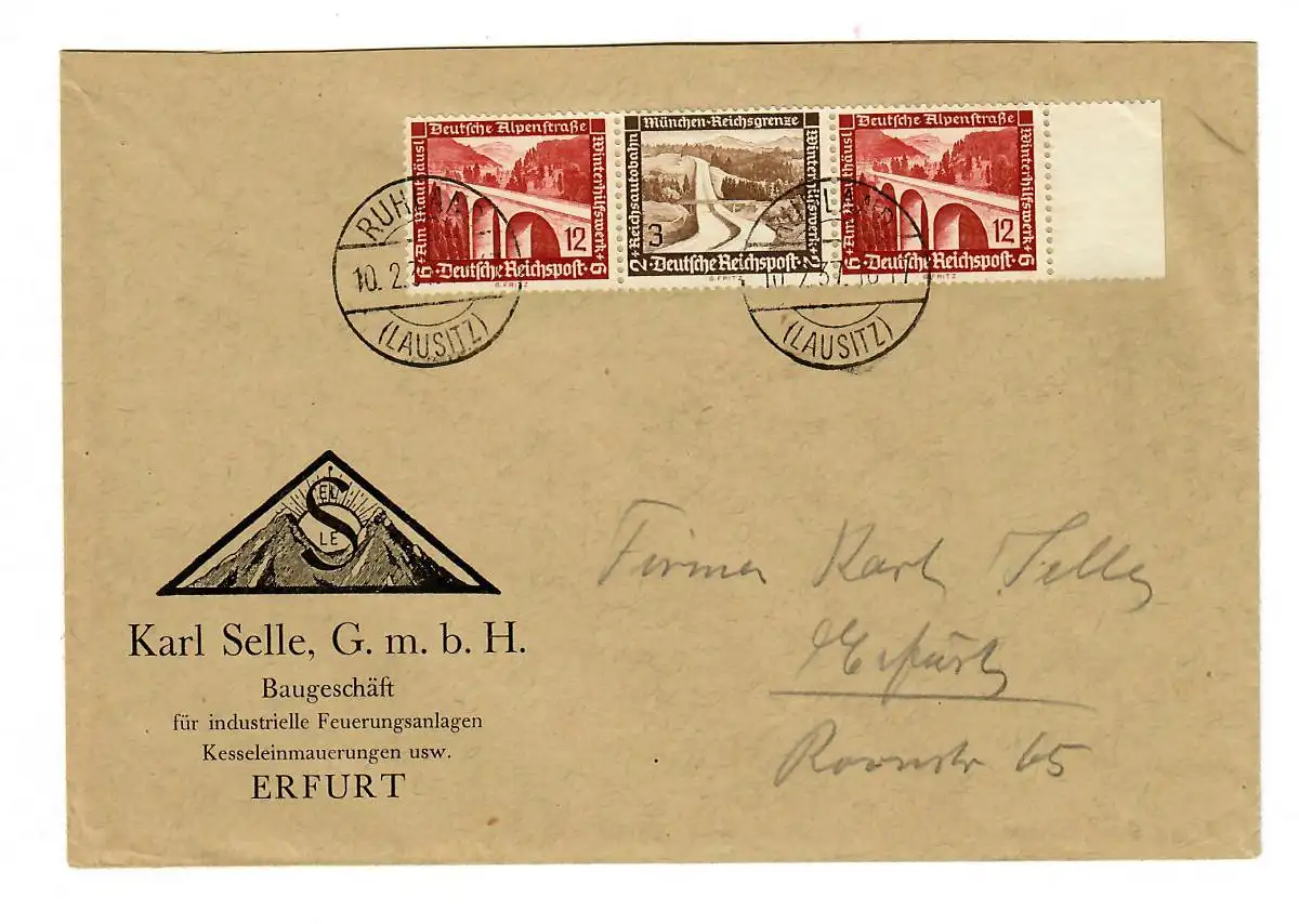 Lettre de Leuna avec impression, d'après Erfurt, 1937