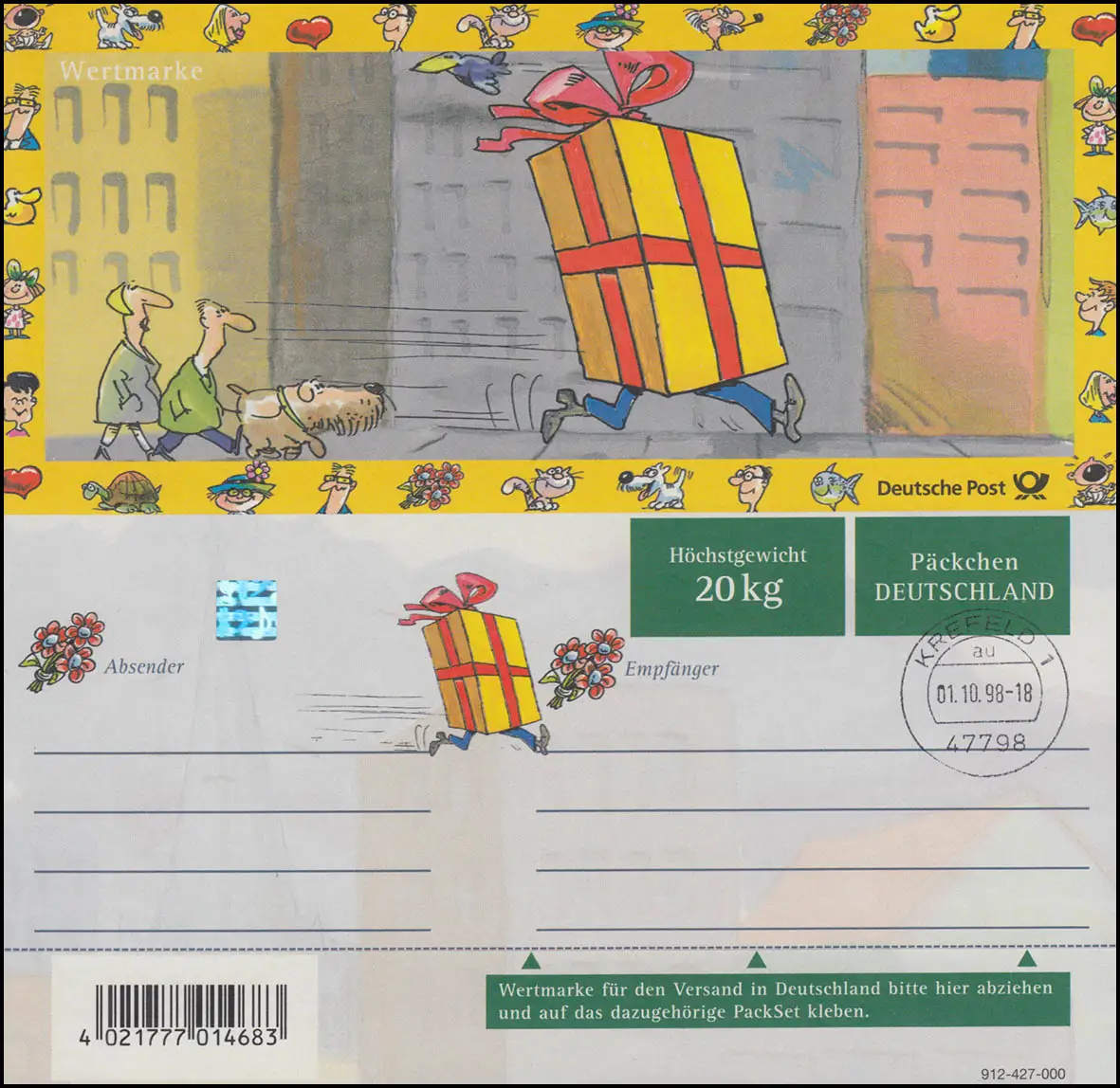 Brochure de paquets PZ 6/02 Salutations ALLEMAGNE, cachet du premier jour KREFELD 1.10.98