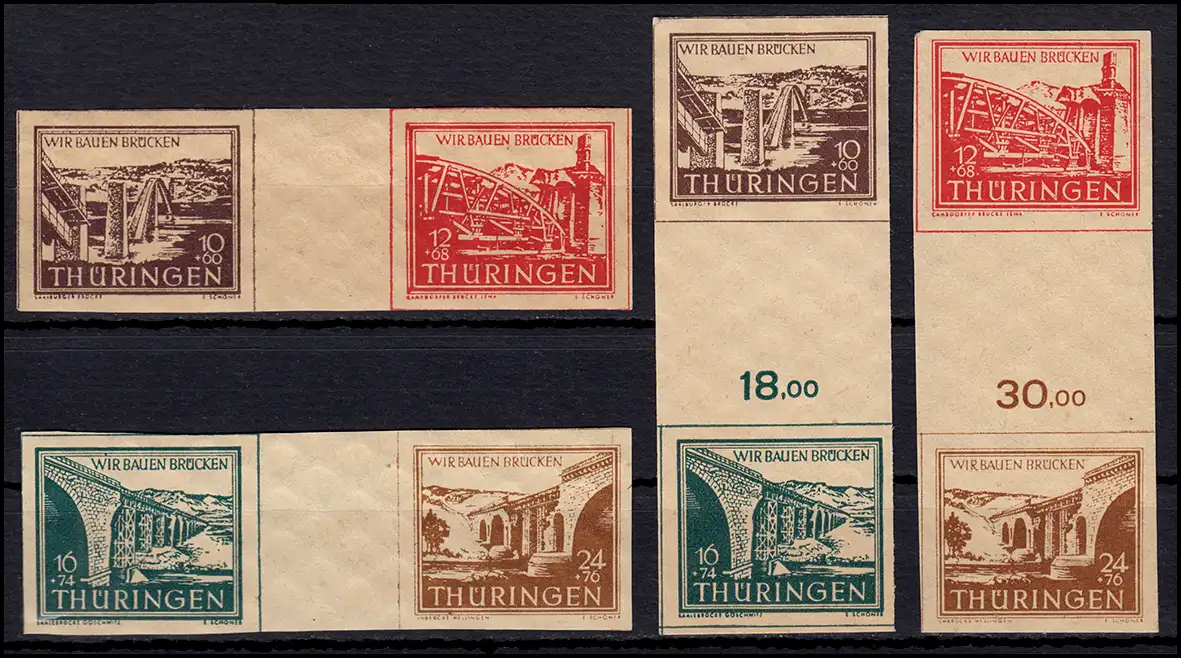 Ensemble composé de quatre impressions intermédiaires possibles de l'arc de pont complet, non pliées par la poste N° de catalogue: 112-115 WZd/SZD Vérification: original Référence produit: 00000000012009>Note: Cet article n'est disponible qu'une seule fois. Vous recevrez exactement l 'article représenté.
