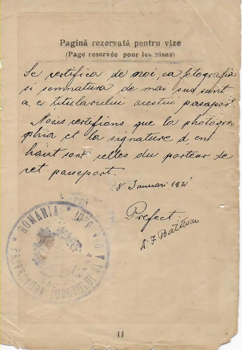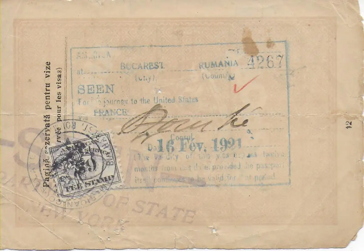 Bucarest: passeport de la France vers les États-Unis, 1921
