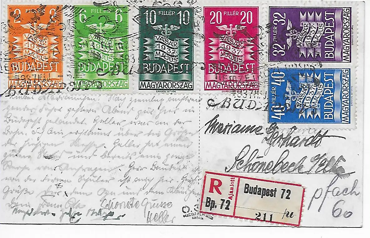 Budapest Enregistrer sur la carte de vue 1937 après Schönebeck