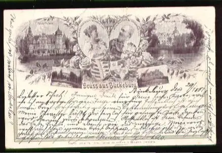 Bückeburg. Gruss aus. Neues Palais, Fürstl. Residenzschloss, Schloss zu Stadthagen, Schloss Hagenburg, Marie und Georg reg. Fürsten zu Schaumburg Lippe - Gelaufen 1901. (NPLZ 31675)