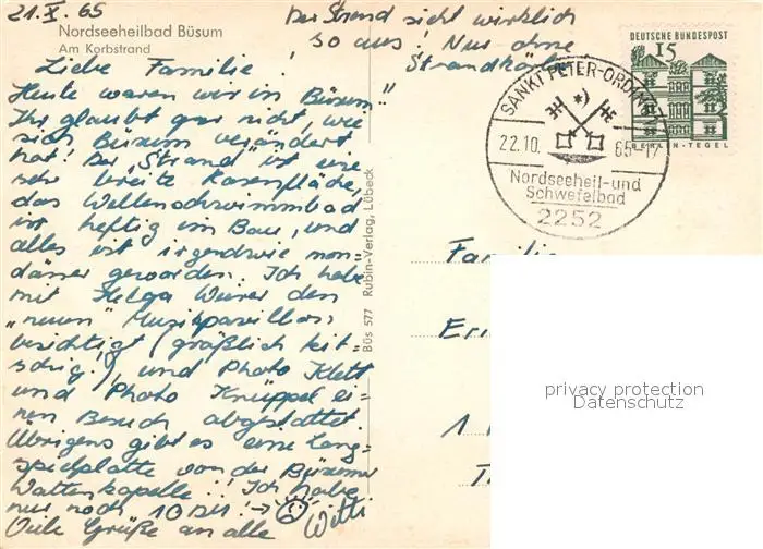 Buesum_Nordseebad Am Korbstrand Buesum_Nordseebad postalisch gelaufen 1965 Erhaltung siehe scans [WerneD78] WernPID7