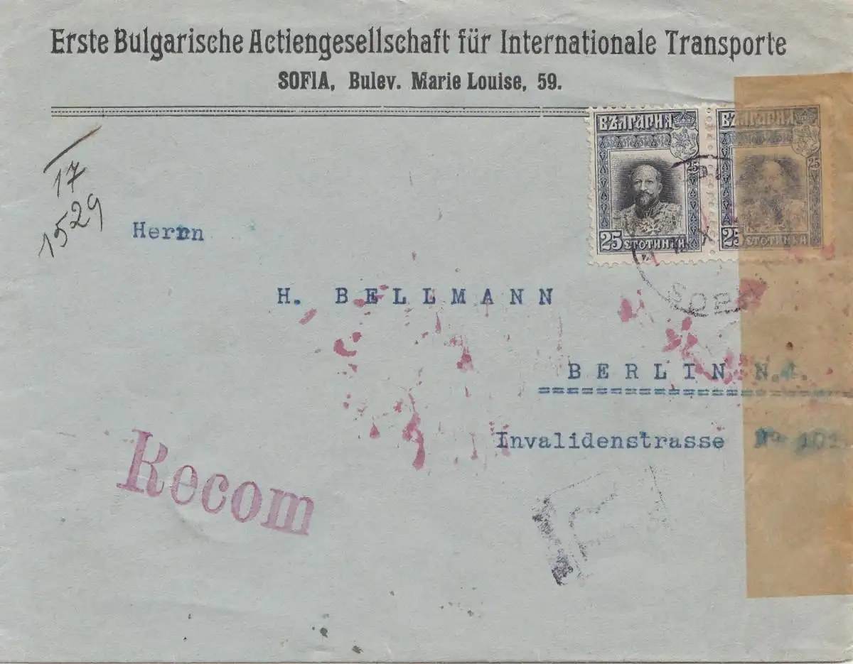 Bulgarie: 1917: Lettre recommandé de Sofia à Berlin