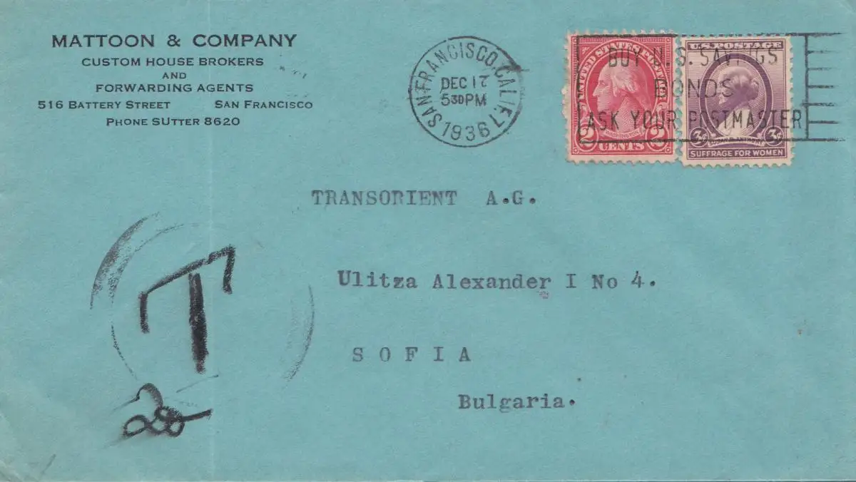 Bulgarie 1936: Lettre des États-Unis à Sofia/Tax, États‐Unis-Vignette Holiday Greetings