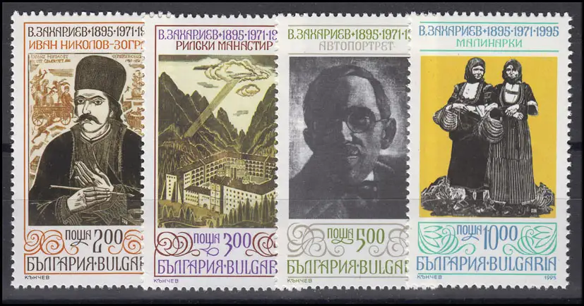 Bulgarie: Art moderne peintures 1995, 4 valeurs, ensemble **