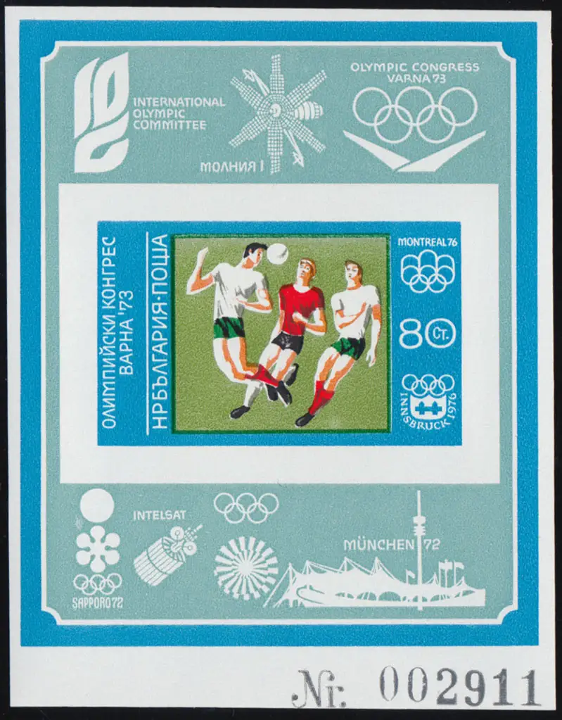 Bulgarie Bloc 42B Congrès olympique 1973: cadre bleu non-denté **/MNH