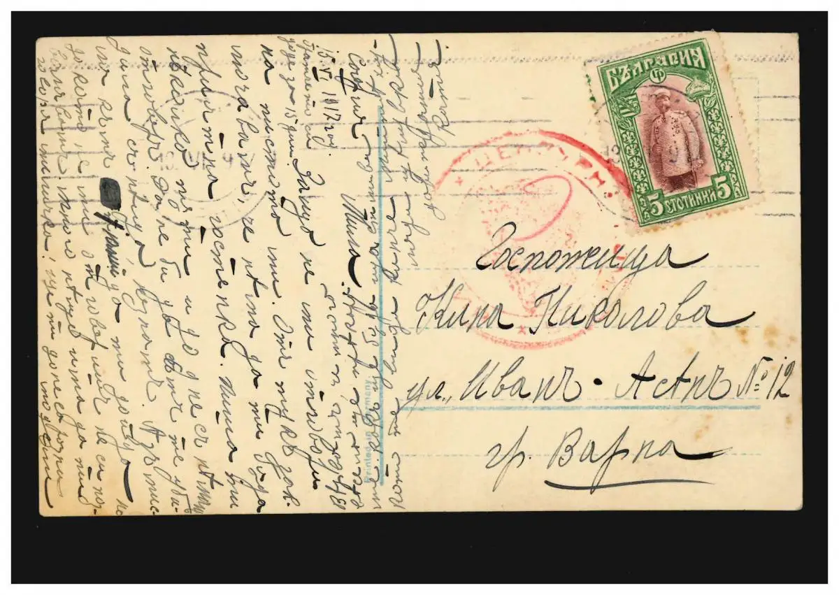 Tampon de censure rouge bulgare sur mode-AK image féminine, couru 15.5.1917
