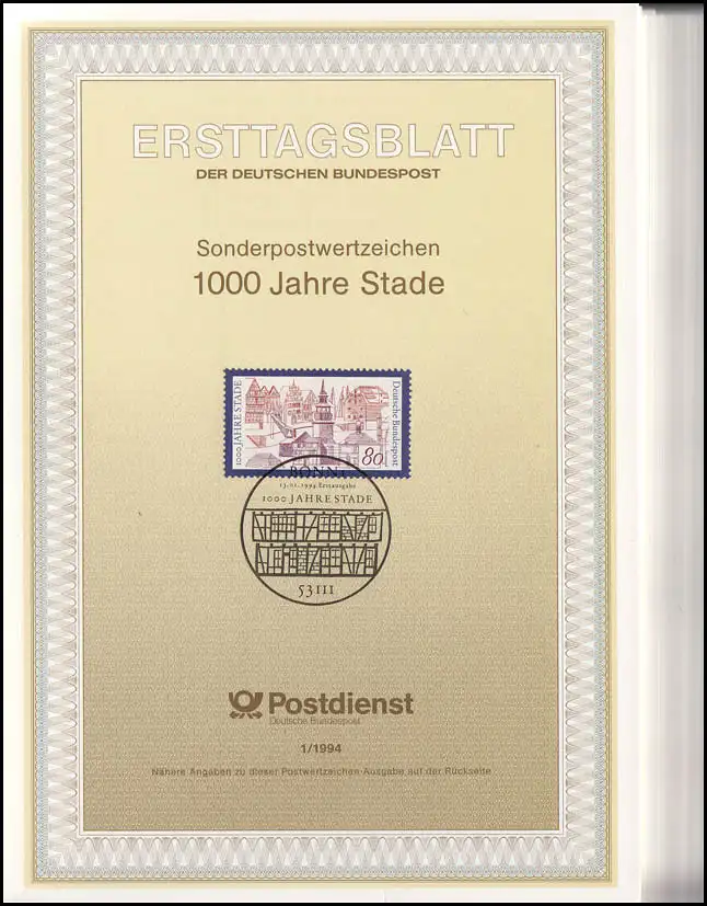 Bulletins de première journée ETB Bund millésime 1994, n° 1 - 43 complet