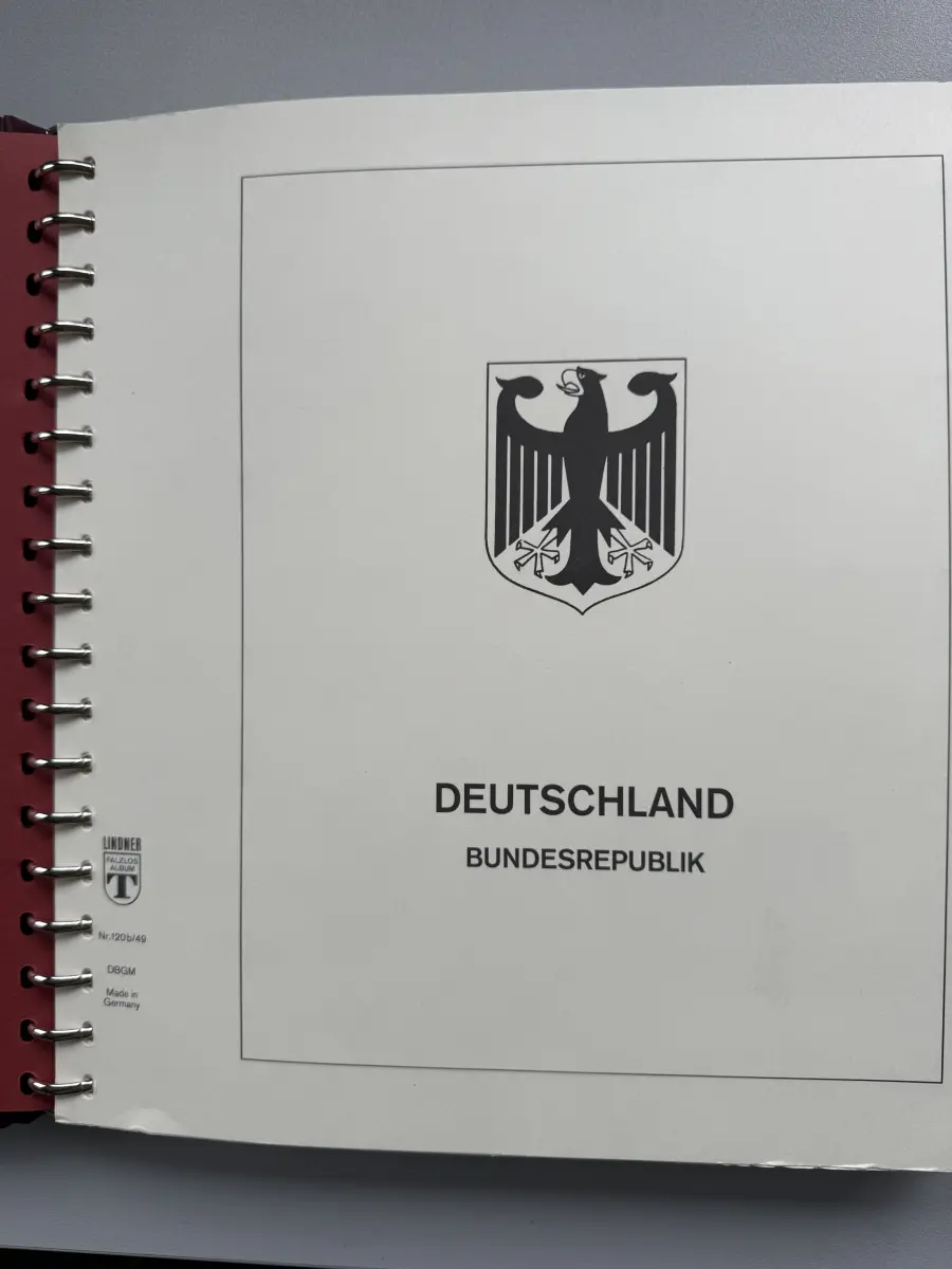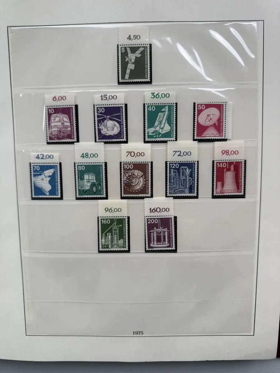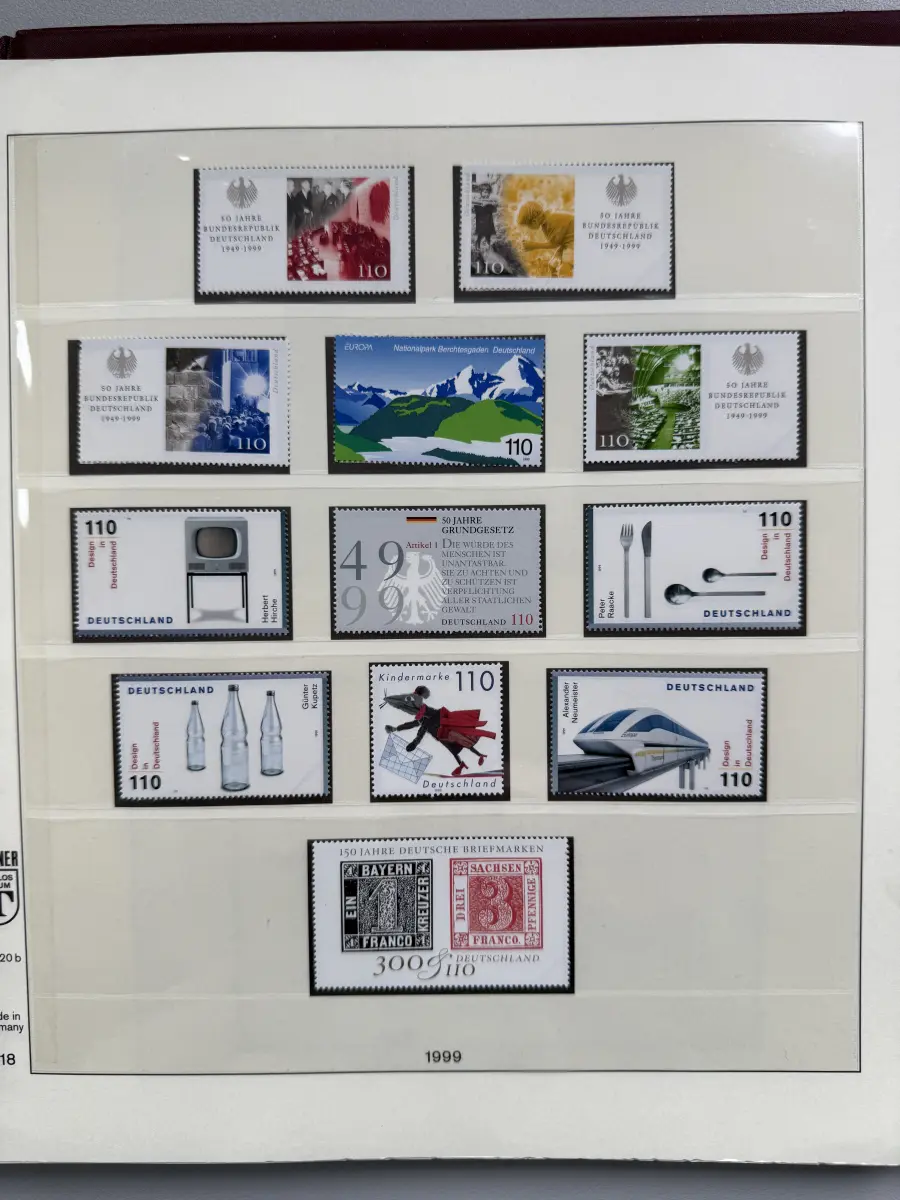 Die Ausgaben der Deutschen Bundespost von 1959-1999 aus Sammlernachlass postfrisch vier LINDNER-Vordruckringbindern auf über 200 Lindner-T-Vordruckblättern (1949-2000) in allen Hauptnummern nach MICHEL augenscheinlich komplett. Vor 1959 sind auch noch einige Marken vorhanden, der Jahrgang 2000 in DM-Währung ist ebenfalls eingefügt. Auch die Block-Einzelmarken sind offensichtlich alle enthalten, dazu noch C/D Werte, ATM, Letterset, Bogenränder etc. sind vorhanden. Der Neupreis für die Vordruckblätter alleine liegt bereits bei weit über 500 Euro, Ringbinder unberechnet. Dazu kommen dann noch die 41 Briefmarken-Jahrgänge.