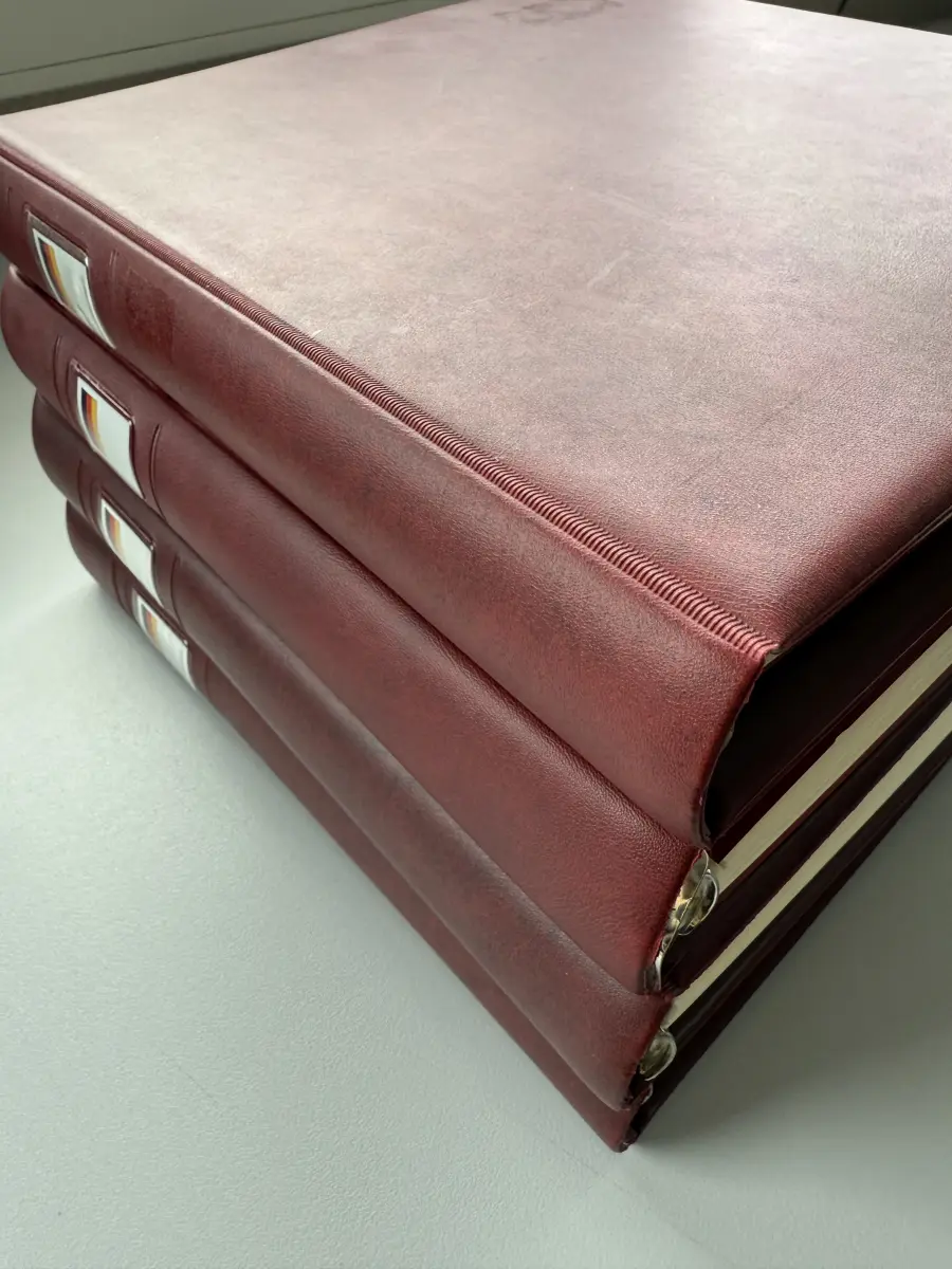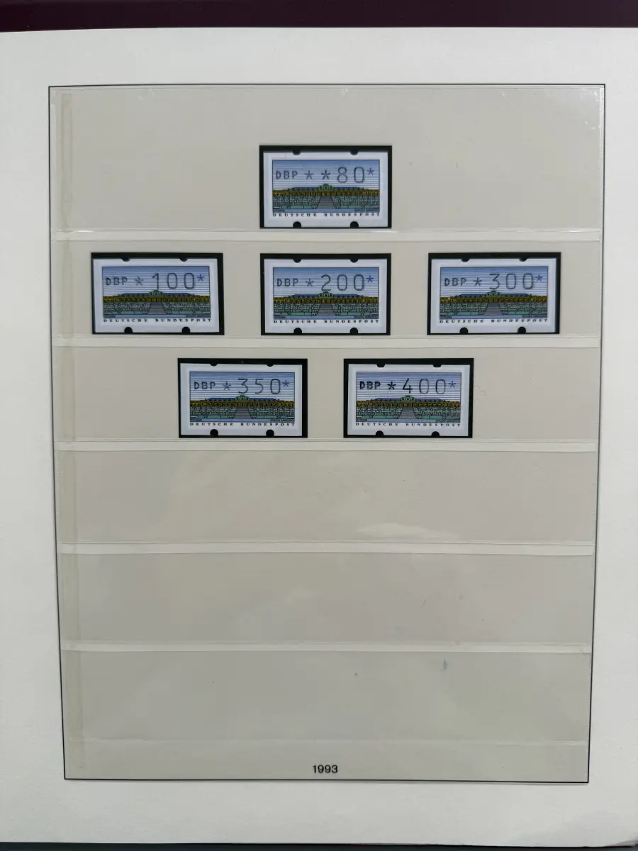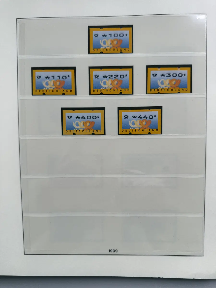 Die Ausgaben der Deutschen Bundespost von 1959-1999 aus Sammlernachlass postfrisch vier LINDNER-Vordruckringbindern auf über 200 Lindner-T-Vordruckblättern (1949-2000) in allen Hauptnummern nach MICHEL augenscheinlich komplett. Vor 1959 sind auch noch einige Marken vorhanden, der Jahrgang 2000 in DM-Währung ist ebenfalls eingefügt. Auch die Block-Einzelmarken sind offensichtlich alle enthalten, dazu noch C/D Werte, ATM, Letterset, Bogenränder etc. sind vorhanden. Der Neupreis für die Vordruckblätter alleine liegt bereits bei weit über 500 Euro, Ringbinder unberechnet. Dazu kommen dann noch die 41 Briefmarken-Jahrgänge.