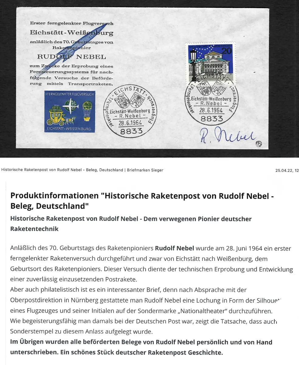 Bund 1964: Historische Raketenpost von Rudolf Nebel, Unterschrift