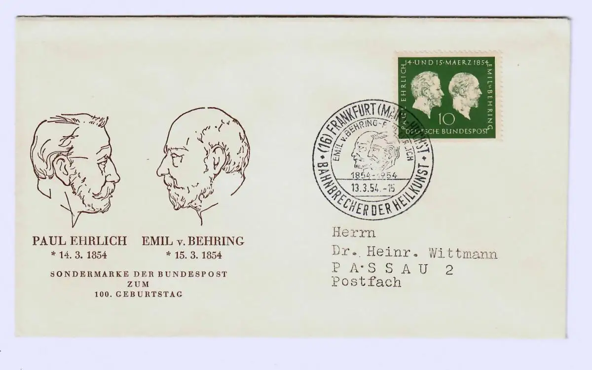 Bund: MiNr. 197-199 sur 3x FDC, Behring, Gutenberg, Boniface