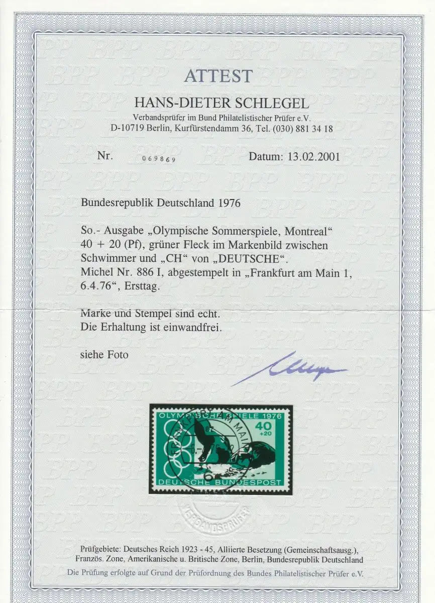 Confédération: MiNr. 886 I, cacheté, BPP Battest