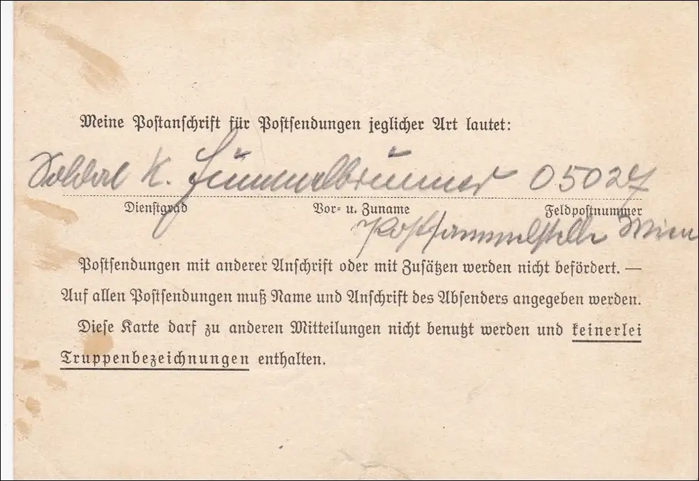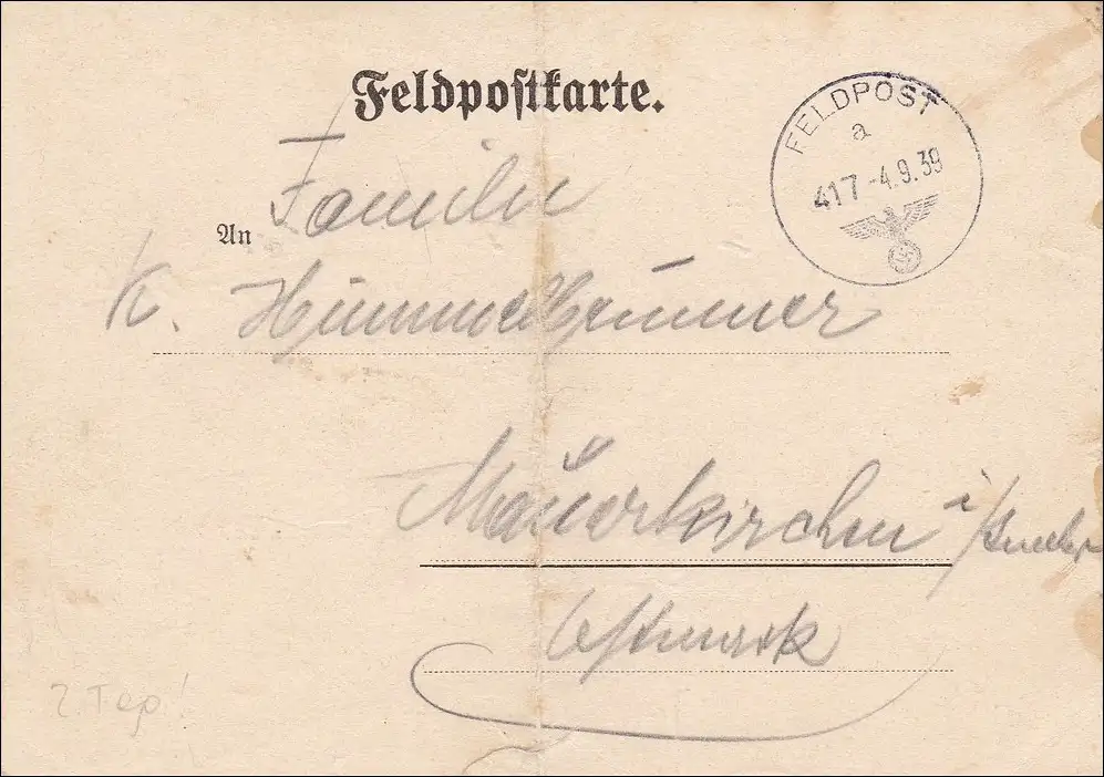 B&M: carte postale de champ 1939 avec numéro de champs 05027, date antérieure